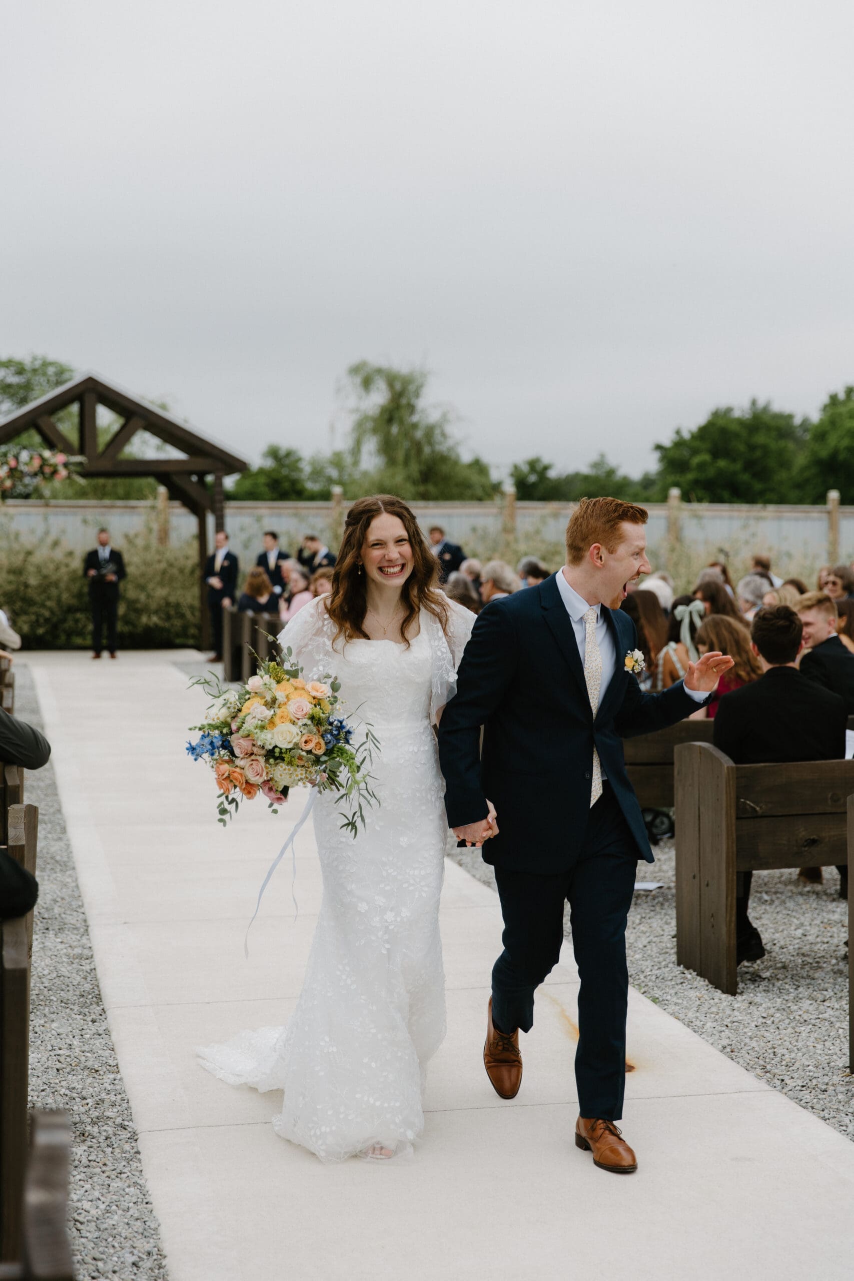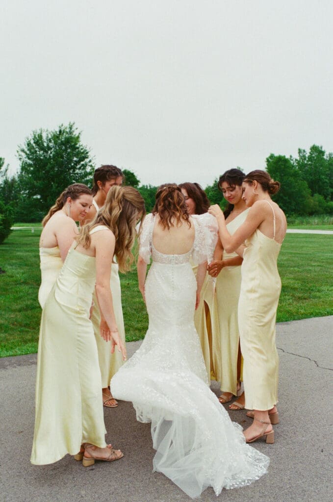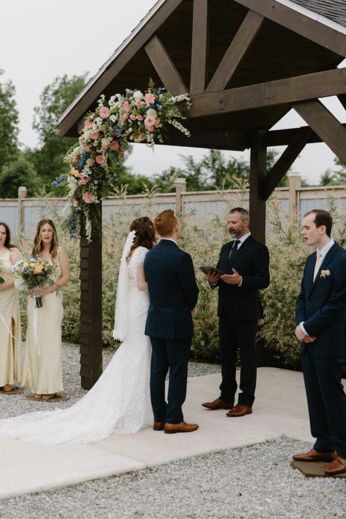 Set at The Covenant Place, the day carried a soft, natural beauty that reflected the heart of the couple themselves. Wildflower bouquets and butter yellow bridesmaid dresses brought a light, joyful warmth to the setting, while overcast skies held back rain just long enough for the celebration to unfold uninterrupted. The atmosphere felt grounded and sacred, with an ease that allowed every moment to feel present and unforced.